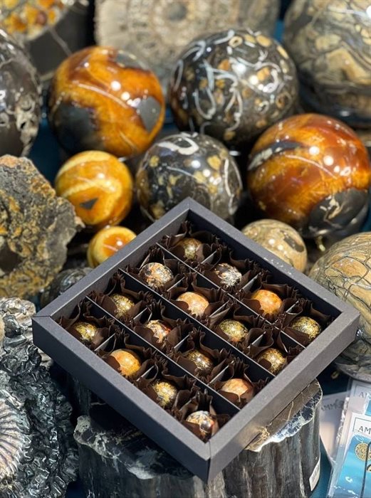 «В 2023 году в Ульяновске открыли «Симбирцитовую залу» — музейно-выставочное пространство, где представлены арт-объекты из симбирцита и коллекция аммонитов, - рассказала ulpravda.ru Кристина Митина. – Я познакомилась с руководством «Симбирцитовой залы», предложила им совместный проект: по картинкам имеющихся у них арт-объектов из симбирцита я буду выпускать коллекционный шоколад. Вскоре «Симбирцитовая коллекция» была представлена губернатору Алексею Русских на «Форуме деловых женщин».