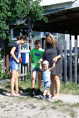 Семья встречает нас у калитки. Маму за руки держит младший сын - двухгодовалый Никита. Рядом с ним старшие, 12-летний Лев и 14-летняя Лиза. Лев делает успехи в спорте, Лиза любит рисовать и занимается в художественной школе. Не отстает от них Никита - недавно участвовал в конкурсе талантливых детей. Но и на другом поприще он тоже хочет отличиться - рвется в вольеры помогать брату и сестре в уходе за птицами. Их бабушки и дедушки, кстати, тоже участвуют в сельскохозяйственных делах.