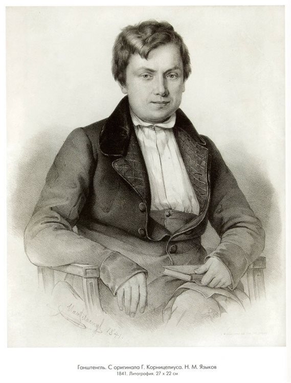 Николай Языков родился (4 (16) марта 1803 года в Симбирске. В 1814 году он поступил в Санкт-Петербургский горный кадетский корпус, затем учился в Институте инженеров путей сообщения, в Дерптском университете (1822–1829), но учебных заведений не окончил – увлёкся поэзией. Весной 1819 года состоялся поэтический дебют Н. Языкова в журнале «Соревнователь просвещения и благотворения». Его стремительно растущий талант сразу был замечен известными литераторами. А.С. Пушкин в письме П. Вяземскому писал о Языкове: «Если уж завидовать, так вот кому я должен завидовать... Он всех нас, стариков, за пояс заткнёт».