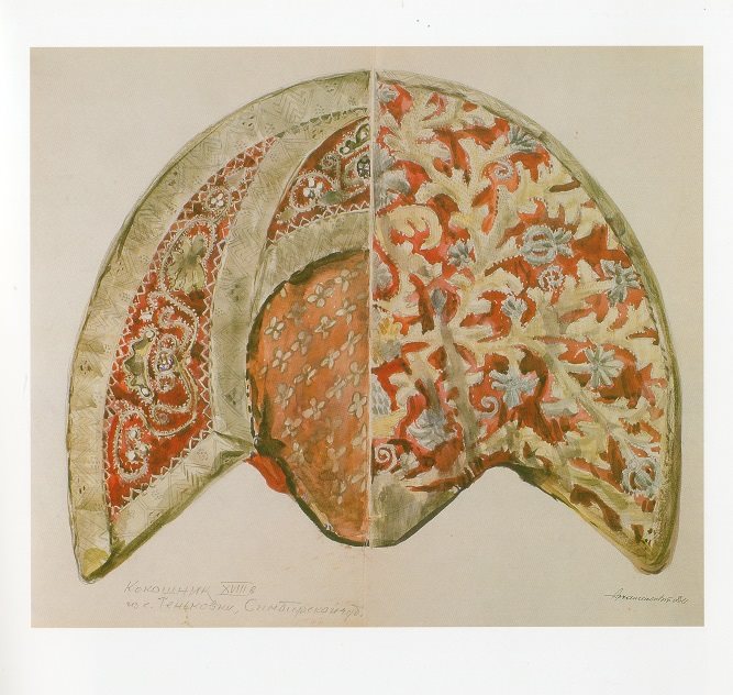 Д. И. Архангельский «Кокошник XVIII века с. Теньковка Симбирской губернии». 1921 г. Из альбома «Д. И. Архангельский. Графика: золотой фонд Ленинского мемориала».