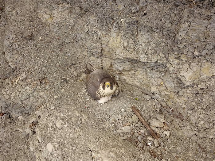 Но, пожалуй, самой значимой орнитологической находкой этой весны, сделанной также на берегах Волги, стало обнаружение гнезда сапсанов – самого быстрого сокола, занесённого в Красную книгу России. Гнездовье этих крупных соколов было найдено на отвесном волжском обрыве 22 мая 2020 года. В момент обнаружения взрослая птица обогревала птенцов. Данная находка стала первым достоверным доказательством гнездования сапсанов на территории Ульяновской области и надеждой на восстановление численности этого вида в нашем регионе. Во второй половине XIX века Богданов М.Н. (1871) писал, что «сапсан нередок в Симбирской губернии». Однако уже в начале ХХ века Житков Б.М. и Бутурлин С.А. (1906) гнездования сапсанов в Симбирской губернии и её окрестностях не наблюдали, а встречали только изредка в середине и конце августа. В конце ХХ века вид также продолжал встречаться единично во время пролёта, не исключались отдельные случаи гнездования, но они так и не были подтверждены (Бородин, 1994).