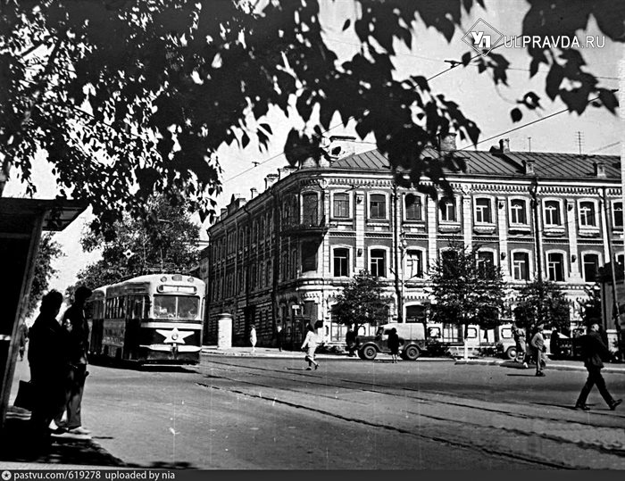 На снимках – главная магистраль Ульяновска середины прошлого века. На ней еще стоят «столбы», на месте которых сейчас завешанный баннерами ЦУМ.