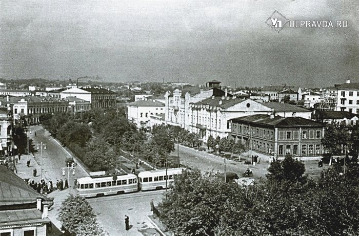На снимках – главная магистраль Ульяновска середины прошлого века. На ней еще стоят «столбы», на месте которых сейчас завешанный баннерами ЦУМ.