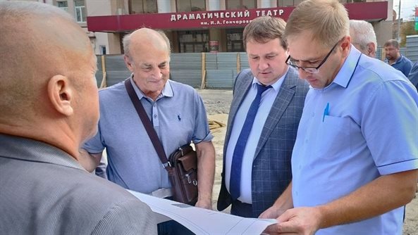 24 июля глава города Александр Болдакин провел на строительной площадке рабочее совещание, во время которого обсуждались варианты дальнейшего благоустройства сквера возле областного драмтеатра.