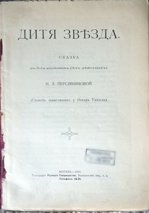 Титульный лист пьесы Н. Персияниновой «Дитя звезда». 1913 год