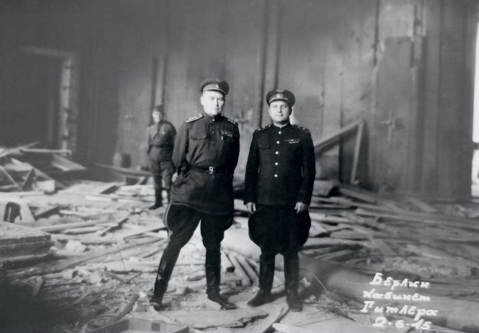 К. А. Вершинин (слева) в кабинете Гитлера. Берлин, 1945
