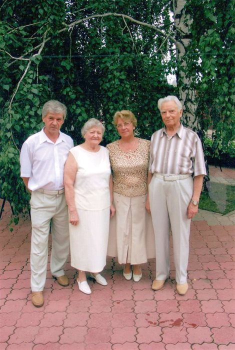 Дмитрий Яковлевич Старостин с супругой Кларой Николаевной (справа), сыном Леонидом и женой старшего сына Татьяной Евгеньевной Старостиной. 1980 год.