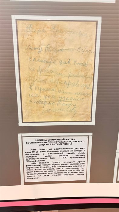 - Эту записку передала нам Вера Григорьевна Прокофьева, наша землячка, - продолжает Шмелькова. - Она была воспитательницей ленинградского детского сада в блокаду. Осенью сорок первого многие родители уже не приходили за детьми - лежали обессиленные от голода по домам. Некоторые уже не вставали.