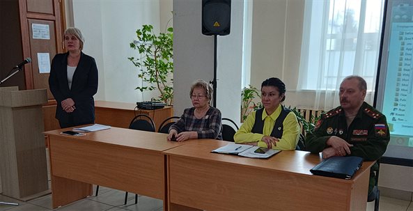 Начальник отдела по работе с ветеранами районной социальной службы О. Н. Ратанова остановилась на основных мероприятиях по подготовке к памятной дате и работе по улучшению социально-бытовых условий жизни ветеранов. В настоящее время на территории района проживает 51 человек, приравненный к ветеранам (вдовы, труженики тыла, житель блокадного Ленинграда) и 363 человека, относящихся к категории «дети войны». Обследование жилищно-бытовых условий данных категорий завершено. По итогам обследования выявлены проблемы, которые решаются в кратчайшие сроки. С каждым годом увеличивается количество волонтеров, которые оказывают посильную помощь ветеранам. В настоящее время волонтерскую деятельность по месту жительства осуществляют 76 человек. Кроме того, в каждой образовательной организации созданы шефские бригады, которые закреплены за вдовами, тружениками тыла, одиноко проживающими гражданами.