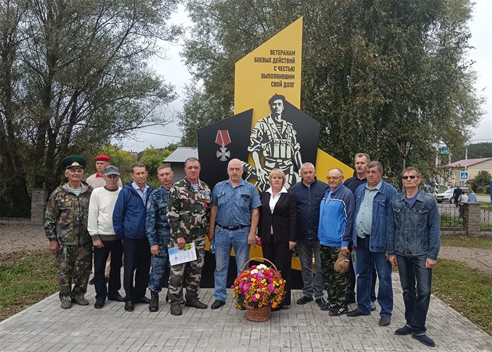 Торжественный момент – открытие обелиска. Почетное право предоставлено участнику боевых действий в Афганистане Александру Жирнову и участнику чеченской контртеррористической операции Виктору Истомину. Минута молчания в память о погибших земляках. Возложение цветов к мемориалу.