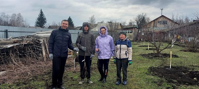 По традиции семья Базовых, представители трех поколений, провели акцию, посвященную 80-летию Великой Победы. Посадили три деревца яблони и два деревца груши.
