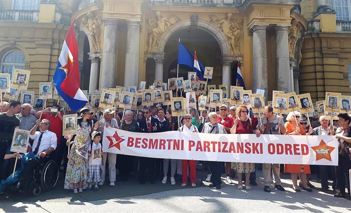 В 2018 году, накануне Дня Победы, в столице Хорватии впервые состоялось официальное шествие «Бессмертного полка» от площади Жертв фашизма до площади Республики. С портретами героев вышли около 300 человек: руководители Союза антифашистов, наши соотечественники, представители посольства России и стран СНГ. После возложения цветов к Стене героев шествие продолжил «Бессмертный партизанский отряд», названный так в честь памяти югославских партизан, сражавшихся против немецко-фашистских захватчиков. С тех пор «Бессмертный полк» стал доброй традицией и проходит в нескольких городах страны.