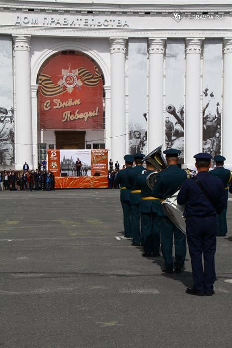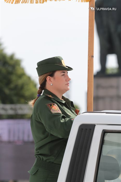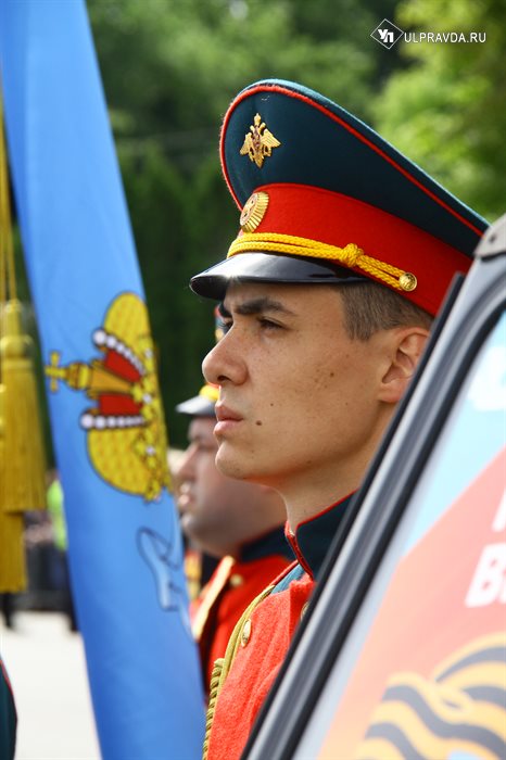 Праздничная программа открылась выездом автомобилей УАЗ «Патриот» со штандартами фронтов Великой Отечественной войны, участвовавших в Параде Победы на Красной площади в Москве 24 июня 1945 года и торжественным прохождением войск Ульяновского территориального гарнизона. Были привлечены 14 парадных расчетов.