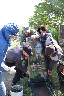 Вчера, 29 апреля, благодаря взаимодействию Ульяновской области и Лутугинской местной общественной организации ветеранов на городском кладбище в Лутугино (ЛНР) был установлен новый памятник герою Великой Отечественной войны, командиру миномётного расчёта 696-го стрелкового полка Ивану Георгиевичу Голикову.