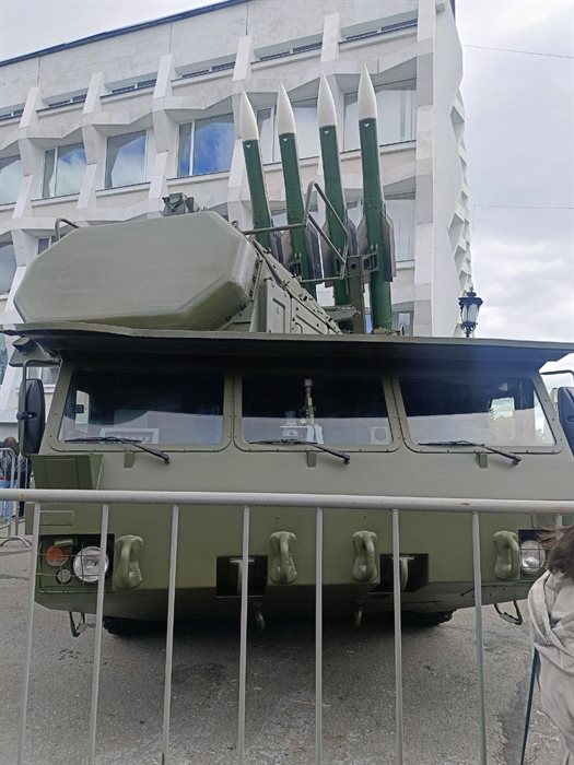 Во главе экспозиции на эспланаде традиционно - гордость ульяновского ОПК – установка войскового ПВО «Бук М2Э», отличившаяся на СВО.