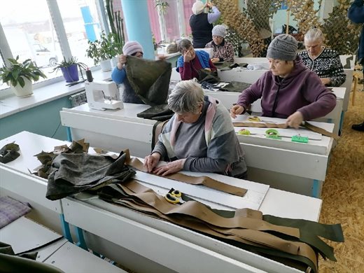 Для старшего поколения еще одного центра активного долголетия - «Золотое время» - минуты добрых дел пролетают незаметно за работой. В каждую изготовленную плащ-палатку, нашлемники, сеть вносится частичка тепла и добра для наших ребят, которые сейчас сражаются в зоне СВО.