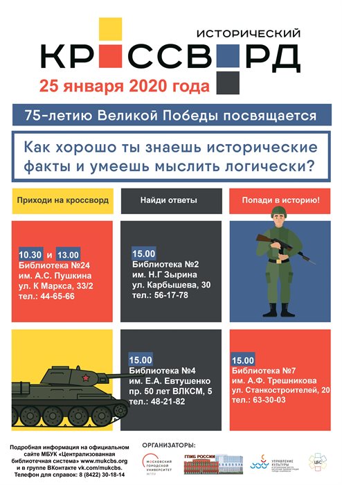 25 января сразу четыре библиотеки Централизованной библиотечной системы станут площадками проведения Всероссийской просветительской акции «Исторический кроссворд - 2020».