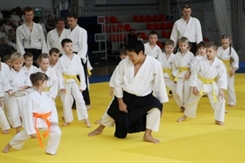 Когда дело дошло до приемов борьбы, казалось, что дети были не против еще поскакать и попрыгать. Но все-таки айкидо - это единоборство. А чтобы показать, что в айкидо побеждать может каждый - независимо от возраста и роста, сэнсэй позволял подопечным побеждать себя.