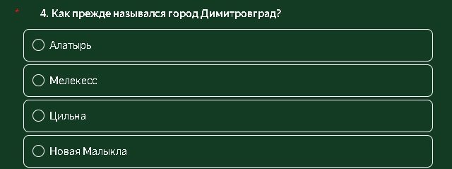 В четвертом - вспомнить, как раньше назывался город Димитровград.