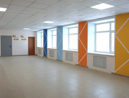 По данным специалистов, объём выполнения ремонта составляет 90%. На сегодняшний день завершена отделка козырька здания, на финишном этапе находятся обновление санузлов и замена окон в спортивном зале.