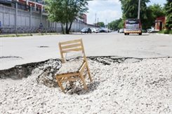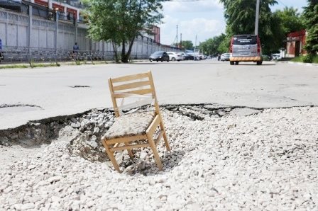 Одинокий накренившийся стул в яме с дорожным щебнем - этот образ вполне мог бы стать инсталляцией на выставке современного искусства и олицетворять многовековой поиск решений для избавления от родного бездорожья. Ямочный ремонт стульями общественники обнаружили на ул. Карла Маркса в Ульяновске. Правда, выяснилось, что это не массовый, а экспериментальный вариант: начальник управления городского хозяйства заявил, что на этом месте недавно произошел прорыв сетей, надо было обозначить провал, и, видимо, ничего лучше стула под рукой не оказалось. Но, как уверили чиновники, проблема будет устранена. Действительно, через пару часов появились рабочие с лопатами и яму заровняли. Судьба одинокого стула активистам неизвестна.