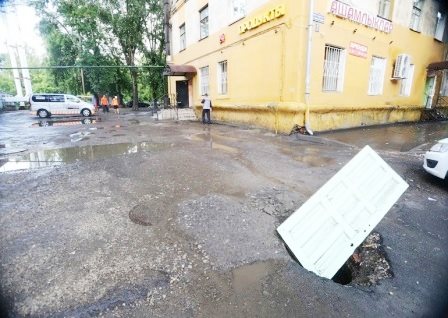 Еще одно околонаучное открытие ждало участников дорожного рейда ОНФ в Казани: на ул. Мазита Гафури они обнаружили, что глубокая яма замаскирована белой дверью. Местные жители дали этому волнующему образу портала в потусторонний мир куда более приземленное объяснение: деревянной дверью они прикрыли люк на дороге и образовавшуюся вокруг яму, чтобы не позволить гражданам и машинам провалиться сквозь землю. На примере этого люка эксперты решили проверить работу ресурса «Народный контроль» (раздел портала государственных и муниципальных услуг Республики Татарстан), который позволяет оперативно принимать заявки от граждан о проблемах на дорогах. В течение дня на опасное место действительно выехала бригада, которая выставила менее загадочные заградительные знаки и приступила к латанию дыры.