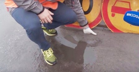 В ходе рейда по Мурманску активисты ОНФ не смогли увидеть ни одной чистой машины - грязь вдоль обочин, на тротуаре, на столбах, на знаках, на машинах и обуви. И, как оказалось позднее, этому есть «уважительная» причина - дороги в Мурманске местные власти ремонтируют грязью. Очень удобно - такого строительного материала в стране в прямом и переносном смысле как грязи. Местный чиновник, ответственный за развитие городского хозяйства, сослался на «специфику региона». По его словам, ремонт ям по классической технологии в Мурманске не работает - отрицательные температуры не позволяют укладывать асфальтовые смеси, а использовать современные технологии слишком дорого.