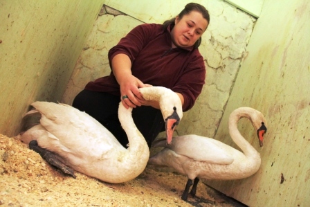 – Корма для лебедей очень сложно подобрать, поскольку они питаются специфическими подводными растениями. Но мы пытаемся переводить их на зерно, на комбикорм для гусей. Очень любят гречневую кашу. Часто бывает, что дикий лебедь в неволе отказывается есть неделями, приходится насильно кормить. Но эта четверка хорошо адаптировалась, на аппетит не жалуются.