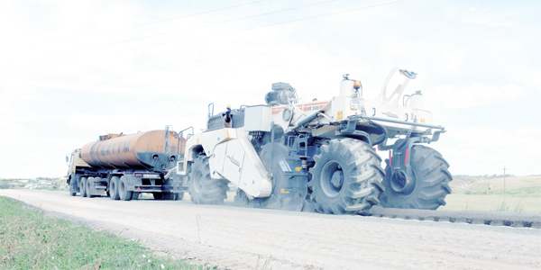 – Сейчас мы проводим стабилизацию грунтов по методу холодной регенерации с добавлением цемента, песка и так далее. – рассказывает главный инженер компании-подрядчика, – с помощью машины-ресайклера смесь перемалывается на глубине до полуметра, затем выводится до нужной отметки и уплотняется. В результате: технология достаточно дешевая и надежная. Основание дороги: высокая бетонная подушка с огромной прочностью и сроком службы. Прочность она, кстати, набирает моментально, местный автотранспорт уже начинает ездить по отремонтированным фрагментам участка. Такое покрытие мы делали в ряде сел еще в том году – оно держится, технология себя оправдывает. Аналогов в Поволжье пока нет.