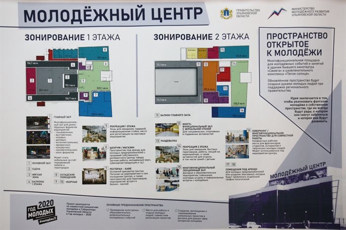 Сергей Морозов поручил представить для обсуждения единую концепцию молодежного центра. На схеме видно, что у разработчиков есть задумка сделать несколько абсолютно разных по своему наполнению пространств, которые будут интересны молодым людям разных возрастов, начиная со школьного.