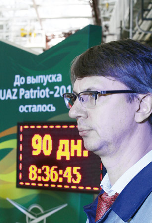 На главном конвейере Ульяновского автомобильного завода состоялась церемония торжественного запуска символических часов с обратным отсчетом времени до начала выпуска нового «УАЗ-Патриота».