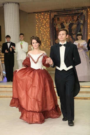 Музыка и танцы соответствовали: открывал бал вальс, затем – с перерывами на награждения и художественное чтение стихов – прозвучало еще несколько классических дореволюционных композиций. Кстати, о стихах: на губернаторском балу читали Лермонтова да Пушкина. Лучшим (и наиболее эмоциональным), как водится, оказалось исполнение «Письма Татьяны». Было и дефиле самых юных участниц бала: с красочными зонтами девчонки прошли-протанцевали от одного до другого конца зала.