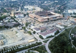 57-метровых железобетонных колонн, на которые легла металлическая платформа в десятки тысяч тонн - основа здания Мемориала. За три года строители смонтировали 5,2 тысячи тонн металлоконструкций, 12,9 тысячи сборного и монолитного железобетона. Уложили 9,5 тысячи кубометров кирпича. Установили 90 тонн алюминиевых и стальных витражей. Облицевали 110 тысяч квадратных метров стен и полов мрамором, гранитом и деревом, остеклили 3,6 тысячи квадратных метров проемов, сделали 11,4 тысячи квадратных метров подвесных потолков (по материалам Ульяновского городского архива).
