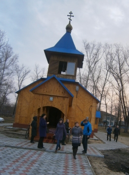 Ее собрали в центре поселка, в полукольце могучего древостоя. Постройку обшили доской-«вагонкой». Благо-устроили парковую территорию, в частности, выложили плиточную дорожку. Иконостас пополнили святыми образами из порушенных церквей ближайших деревень: Беликова, Ляховки, Старой Измайловки.