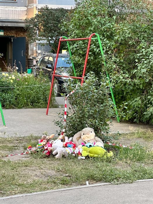 Тем временем горожане организовали недалеко от дома стихийный мемориал – люди несут мягкие игрушки.