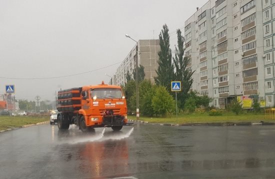 - Мойка дорожного полотна во время дождей, если дождь не переходит в ливень, гораздо эффективнее, чем во время сухой погоды. Мойка асфальтового покрытия при дожде способствует качественному подметанию улицы. Дождь слегка приподнимает осевшую и уплотненную пыль над дорогой, а сильная направленная струя под давлением 20 атмосфер из поливомоечной машины позволяет сбить её в сток, – отметил директор предприятия Владимир Чумуркин.