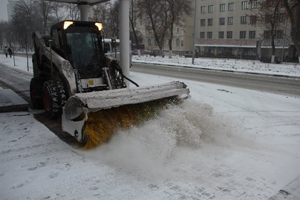 Во всех районах Ульяновска ведётся очистка тротуаров, остановочных площадок и пешеходных переходов. На проспекте Созидателей идёт расширение проезжей части при помощи ротора.