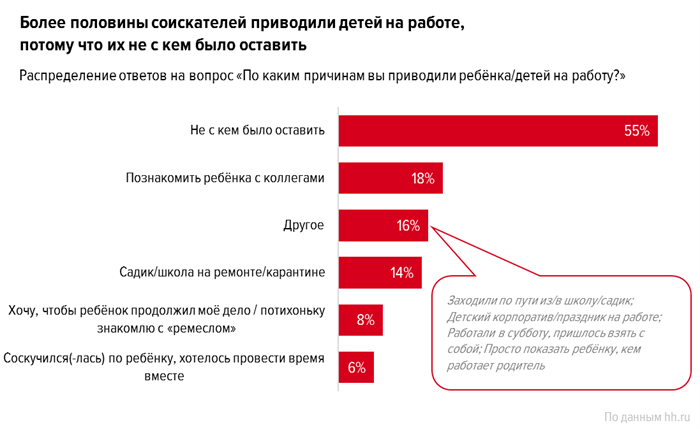 Большинство респондентов (55%) утверждают, что приводили детей на работу, потому что их не с кем было оставить.