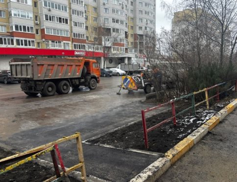 Бригады «Дорремстроя» вели карточно-ямочный ремонт тротуара на улице Симбирской, прилегающих территорий на Самарской, 6а, проспектах Созидателей, 58, Ульяновском, 7 и 24. Напротив дома № 5 по улице Отрадной начато строительство остановки общественного транспорта.