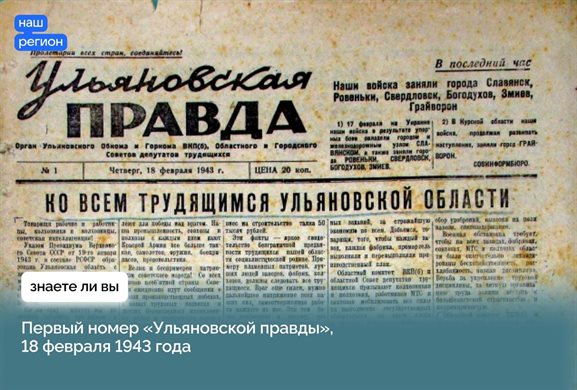 Именно 18 февраля 1943 года вышел в свет первый номер «Ульяновской правды» с Указом Президиума Верховного Совета СССР об образовании Ульяновской области и обращением обкома партии и облисполкома. В обращении была выражена уверенность в том, что каждый ульяновец сделает все, чтобы вывести родную область в число передовых.