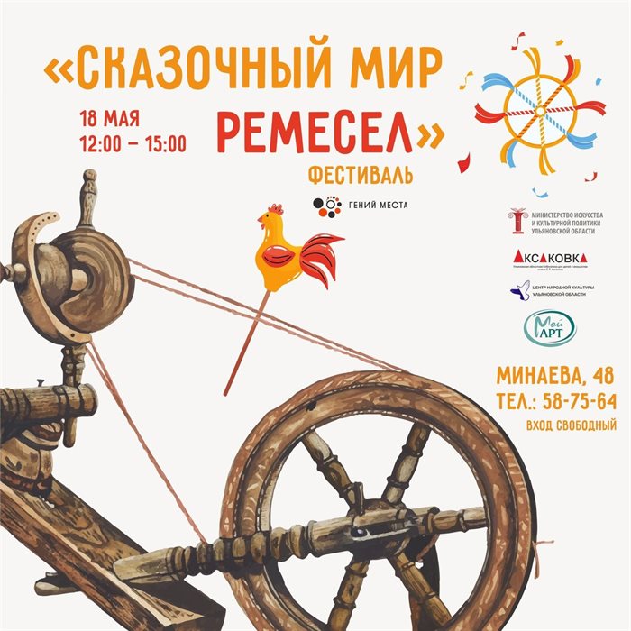 Народному творчеству посвятят воскресный фестиваль «Сказочный мир ремёсел», который развернется в детской библиотеке им. С.Т. Аксакова.  Участников ждут ярмарка изделий мастеров декоративно-прикладного искусства, мастер-классы по народным промыслам и ремёслам, выставка лучших работ российских умельцев, атмосферная музыкальная программа с народными песнями. (6+).