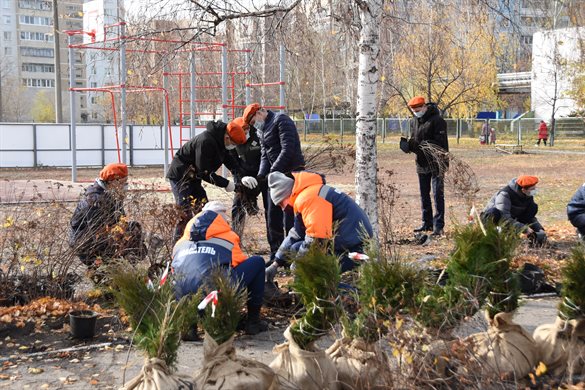 Во время акции, которая прошла на территории школы № 66 (улица Корунковой,6) было высажено 146 саженцев рябины, можжевельника и пузыреплодника.