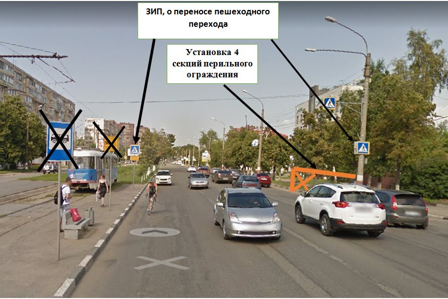 Место бывшего пешеходного перехода в этом районе перекроют барьерным ограждением. При этом автобусная остановка в направлении центра с заездным карманом останется на своём месте.