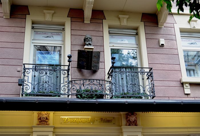 Балкон квартиры, где жил Федор Михайлович Достоевский, украшает бюст писателя с изображением его романа «Игрок».
