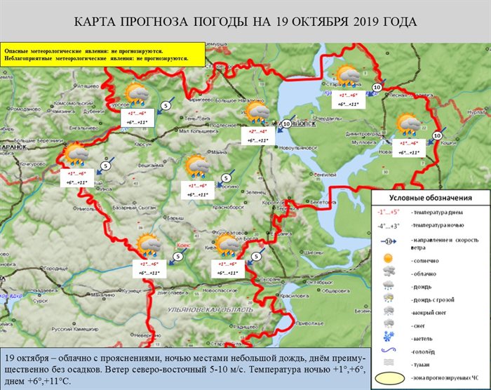 19 октября в Ульяновской области прогнозируется облачная погода с прояснениями, преимущественно без осадков.