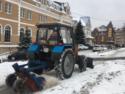 Сегодня днём «Дорремстрой» задействовал в работах 62 спецмашины, в том числе 17 тракторов, в очистке тротуаров, а также 12 бригад рабочих для ручной очистки от снега и наледи остановок общественного транспорта, пешеходных переходов и пешеходной части мостов и путепроводов.