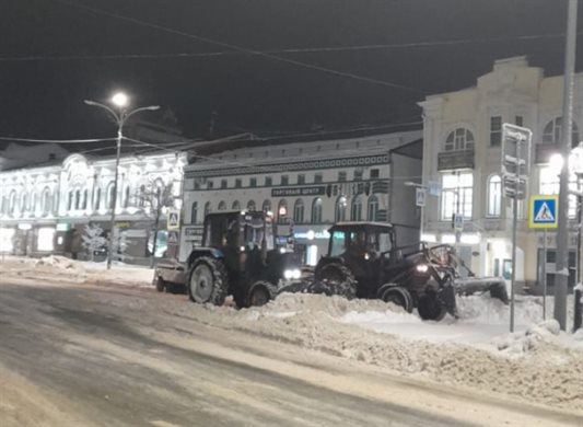 Николай Болдырев доложил, что в ночь на 1 декабря с проспекта Антонова (вдоль проходных ПАО «Ил» – Авиастар), улиц Карла Маркса, Орлова, Энгельса и Дворцовой, переулков Комсомольский и Карамзина вывезено 134 самосвала снега, для этого было задействовано 13 грузовиков учреждения и 7 – арендованных.