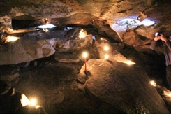 Для того чтобы было удобнее фотографировать, сходили за свечами и слегка раскрасили пещерное пространство. Горящие огоньки напоминали о скором наступлении Нового года и создавали веселое настроение. При свете пещера преобразилась, стало совсем не страшно. Даже захотелось провести здесь романтический вечер при свечах. А еще было бы интересно сделать суровую пещерную фотосессию.