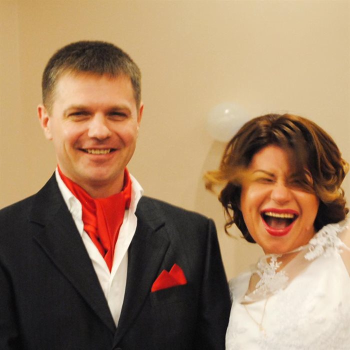 - С моим вторым мужем мы познакомились более 20 лет назад, стали жить в гражданском браке. 24 марта 2004 года у нас родился сын Степа. И тогда мои старшие дети 16 и 20 лет сподвигли нас с супругом узаконить отношения. Мы подали заявление в ЗАГС, а на 17 апреля нас пригласили на торжественную церемонию регистрации брака. В тот день мы с супругом, одетые в спортивные костюмы, приехали в Димитровградский ЗАГС, оставили малыша с моей сестрой в машине и поспешили на роспись. Помню, сотрудники ЗАГСа пригласили поздравить другу друга свадебным поцелуем в помещении, где выдают готовые паспорта, а не в торжественном зале. После регистрации мы быстренько ретировались и поехали домой кормить Степку.