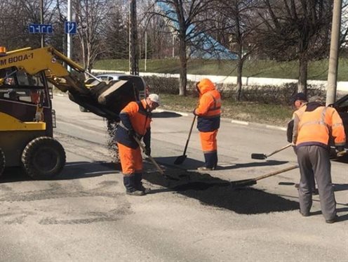 «Дорремстрой» продолжает устранять ямы на дорогах и очищать улицы Ульяновска от смёта.
